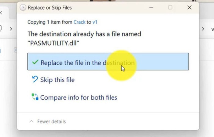 - Bước 3: Bạn chọn Replace the file in the destination để ghi đè file cũ.