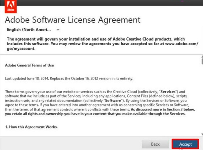 • Bước 9: Bạn chọn Accept để đồng ý điều khoản.