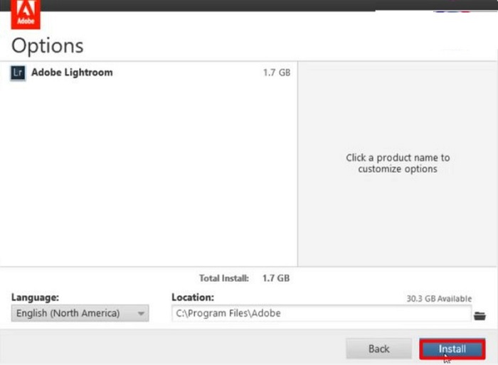 • Bước 10: Anh em nhấn Install Adobe Lightroom CS6 và đợi quá trình hoàn tất.