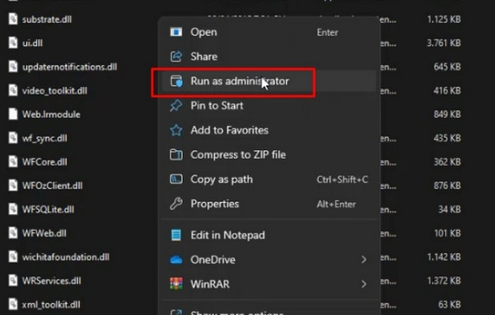 • Bước 5: Bạn chạy file vừa dán bằng Run as administrator.